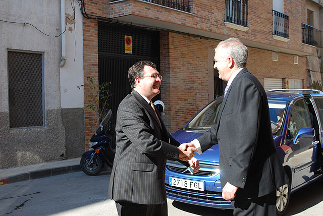 El consejero y el alcalde del municipio visitaron las viviendas propiedad del Instituto y Suelo de la Región de Murcia, ubicadas en el barrio de San José Artesano, que serán rehabilitadas en los próximos meses gracias a una inversión de 200.000 euros procedentes del Plan REPARA de la Administración regional, por el que se rehabilitarán más de 900 inmuebles gracias a una aportación extraordinaria de 1,8 millones de euros.