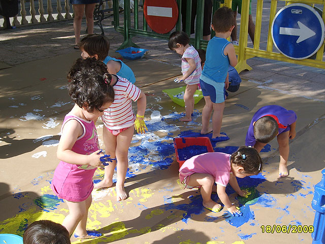 El pasado viernes 19 de junio tuvo lugar desde la Guardería Hoya del Campo una actividad al aire libre con los niños, una experiencia de pintura en la que sobre papel continuo pudieran dar rienda a su creatividad y su expresión libre, pintando con sus manos y sus pies sobre el papel, así como pintando su propio cuerpo y disfrutando de la vivencia.