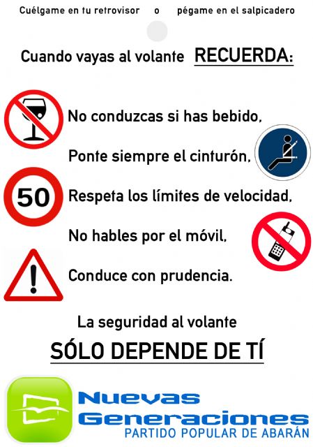 Nuevas Generaciones del Partido Popular de Abarán quiere dedicar el mes de julio del programa EPACTA a concienciar a la sociedad de la importancia que tiene la seguridad vial y promover una actitud responsable en la conducción.