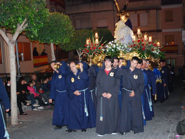 La Hermandad de La Verónica desfiló triste en la procesión general de Miércoles Santo por el fallecimiento de su presidente, Joaquín Molina Gomariz. El paso vistió de luto en homenaje y recuerdo a un hombre íntimamente ligado a la Semana Santa de Abarán. La banda de cornetas y tambores destacó por su toque silenciado.